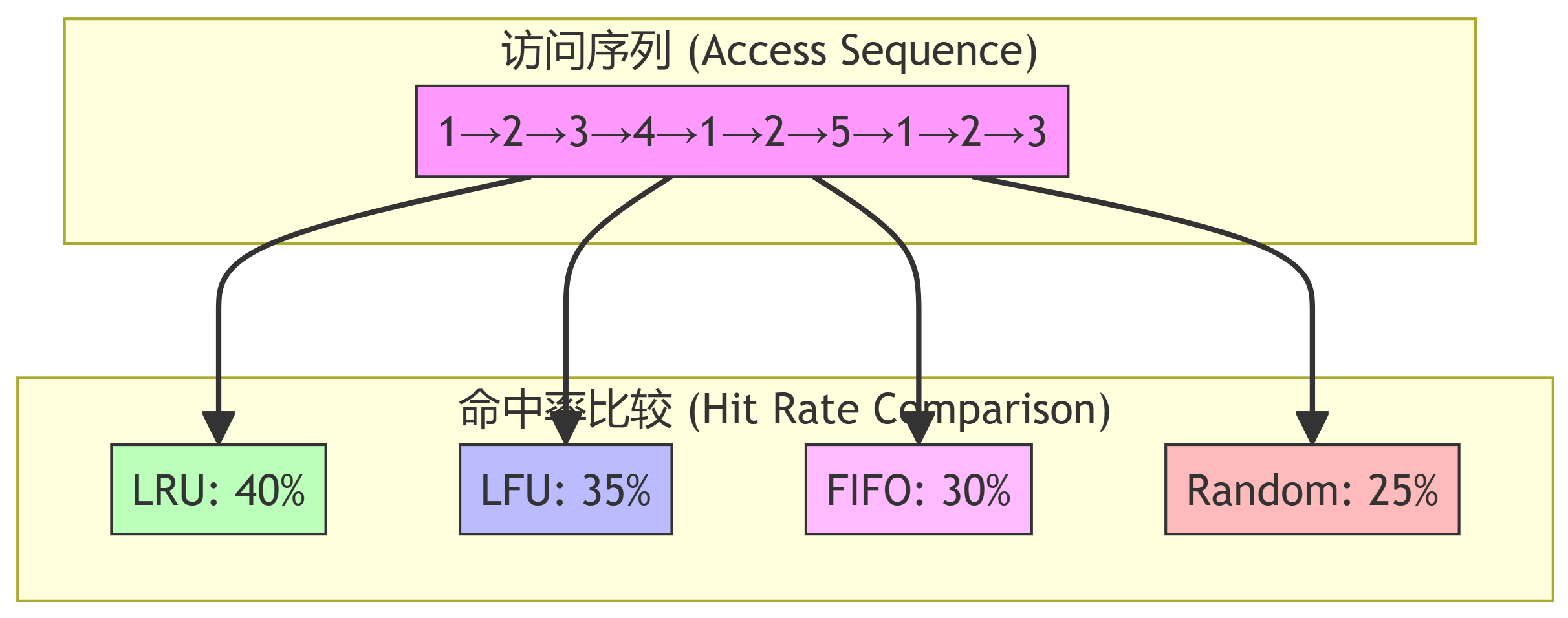 1 2 3 4 5 6 7 8初始状态:[ ][ ][ ] 1 访问 → [1:1][ ][ ] (数字:计数) 1 访问 → [1:2][ ][ ] 1 访问 → [1:3][ ][ ] 2 访问 → [1:3][2:1][ ] 2 访问 → [1:3][2:2][ ] 3 访问 → [1:3][2:2][3:1] 4 访问 → [1:3][2:2][4:1] (替换计数最小的3)