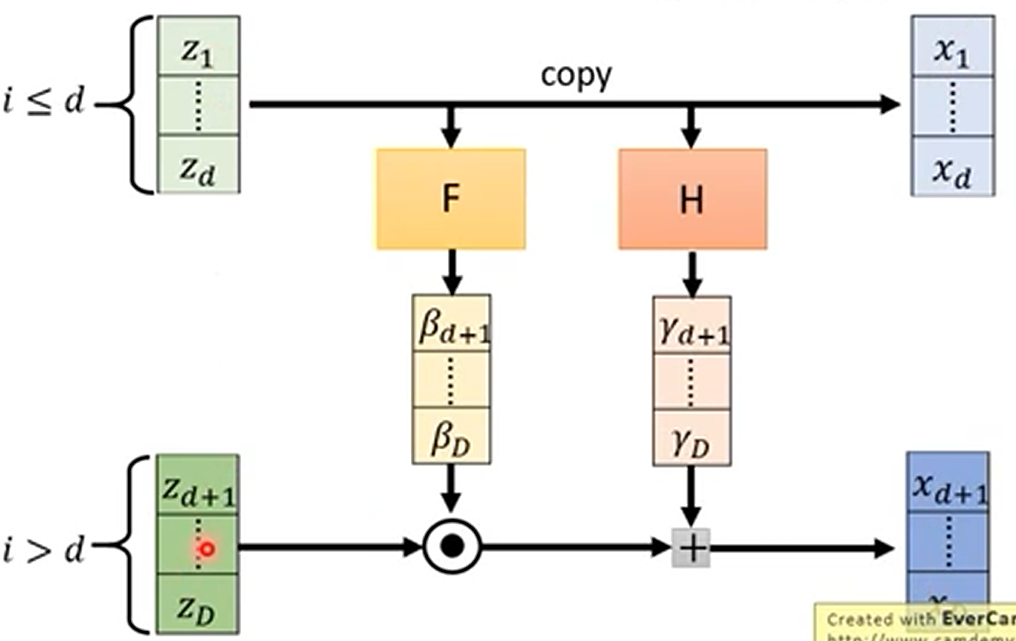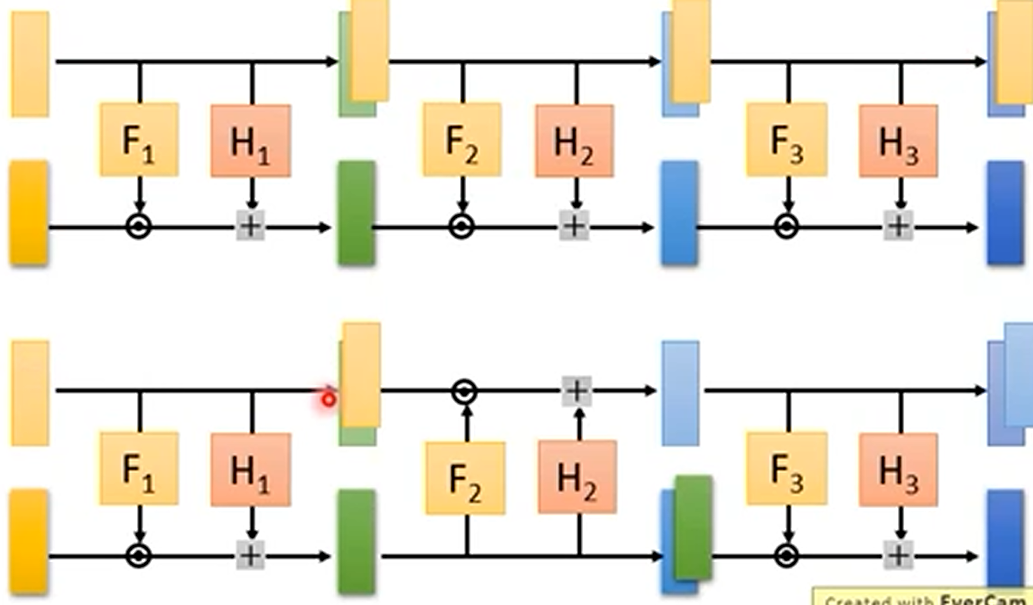 为了解决生成器可逆的问题,flow 采用了如下结构的生成器